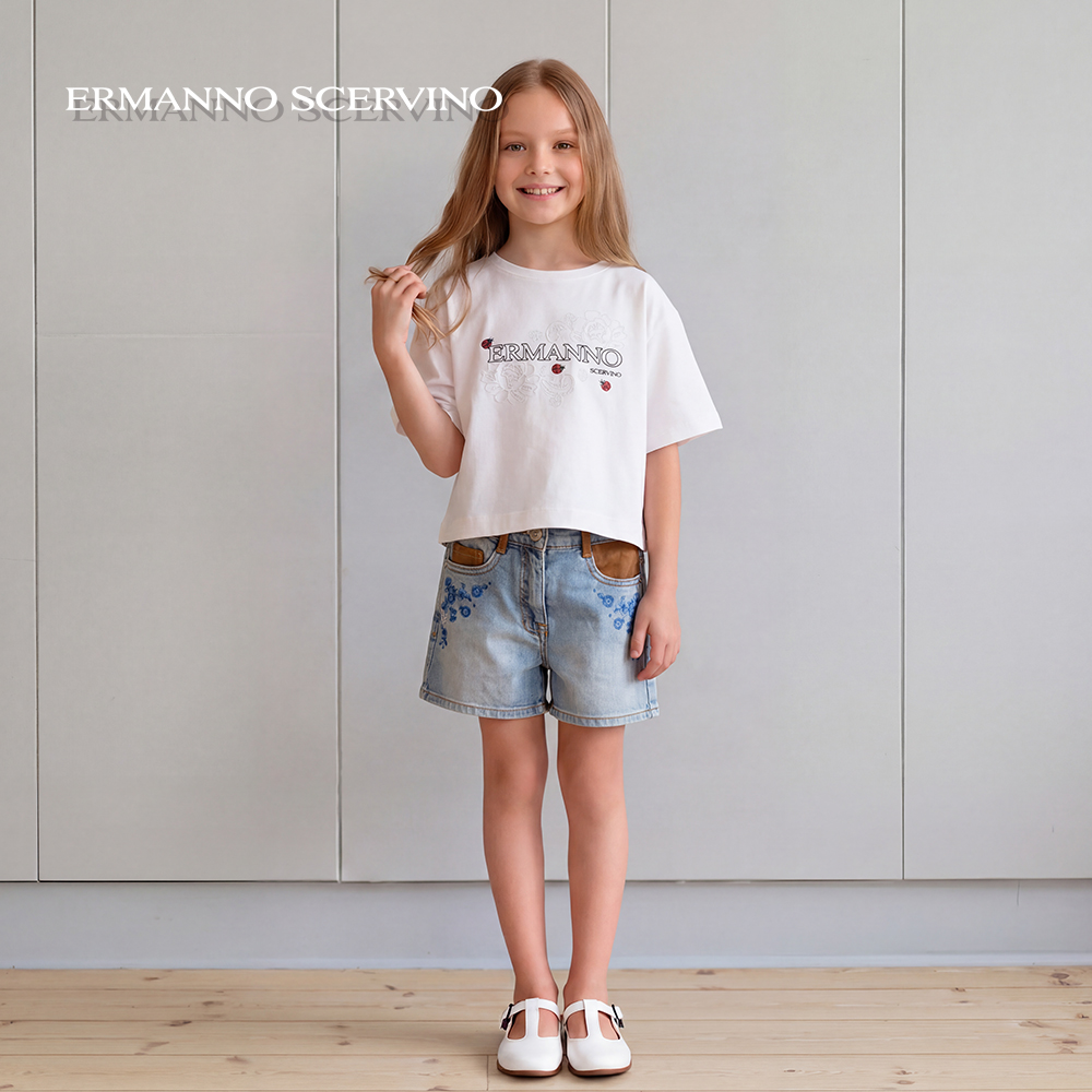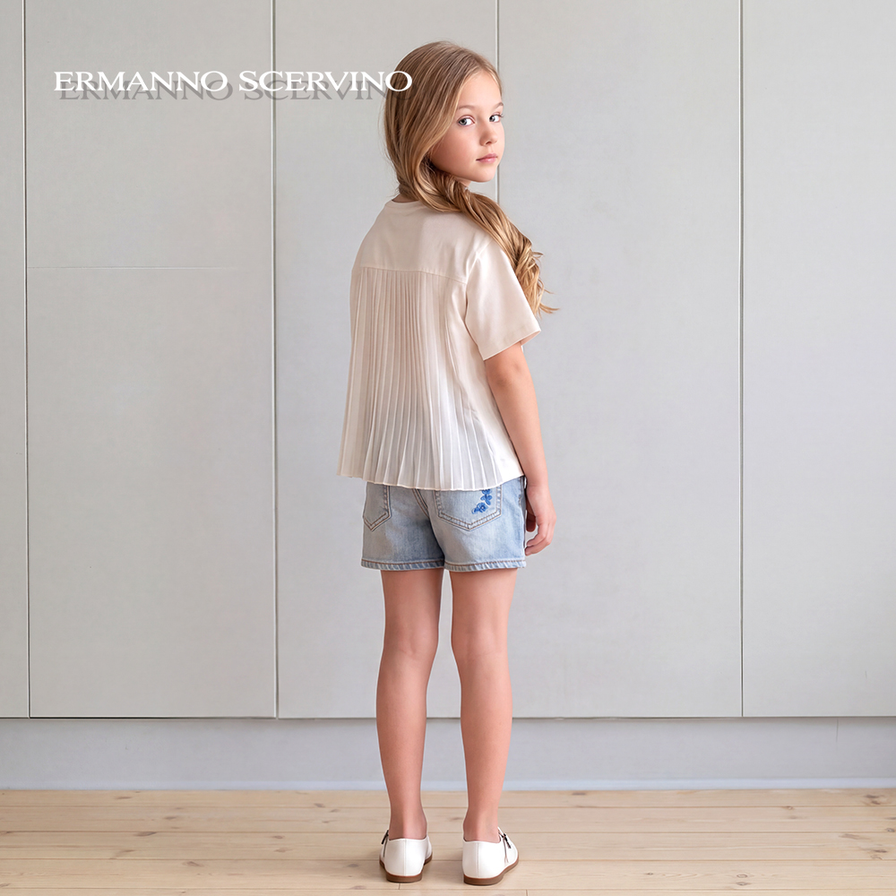 イタリアのラグジュアリーブランド ERMANNO SCERVINO(エルマンノ シェルヴィーノ) の、上品で可愛らしいキッズ用デニムショートパンツです。