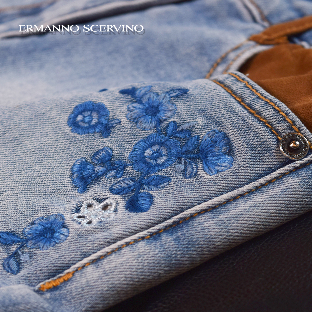 【NEW】ERMANNO SCERVINO キッズ フラワー刺繍 デニムショートパンツ ライトブルー