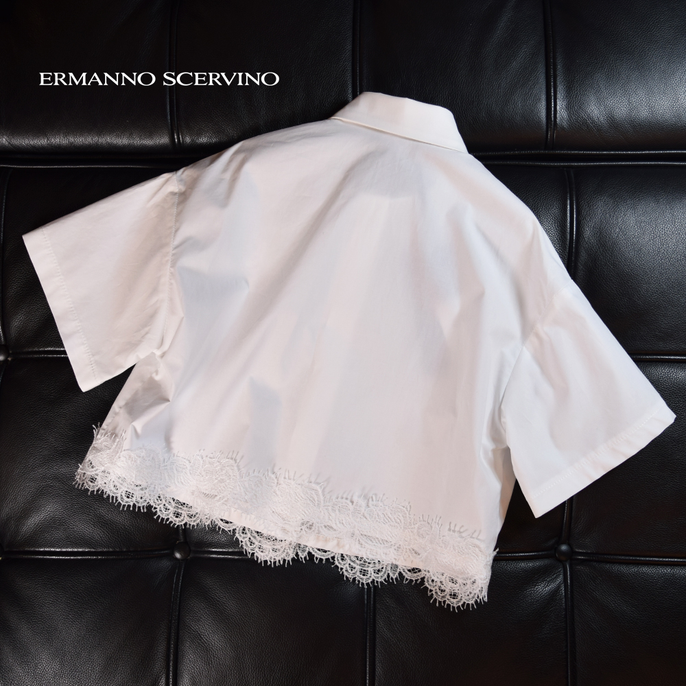 【NEW】 【ERMANNO SCERVINO 】 キッズ レースヘム 半袖ホワイト ブラウス