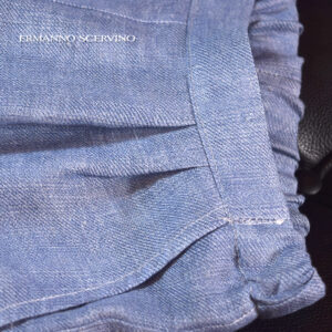 淡く透き通るようなシャンブレーブルーのそざいに、職人の手仕事を思わせる花模様のレース刺繍が裾から描かれ、カジュアルになりがちなショートパンツのスタイルに上品さを与えてくれます。夏に涼しいリネン(麻)素材が季節感たっぷりで、これからの季節に快適に着用いただけます。