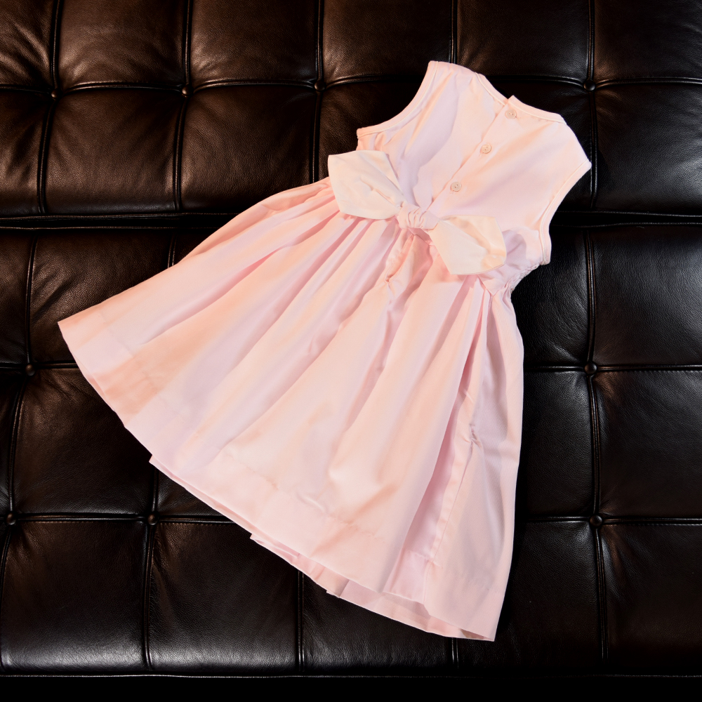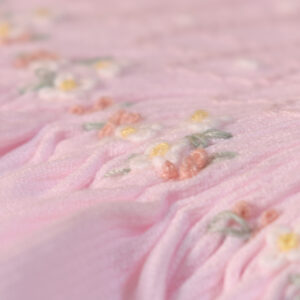 淡いピンクカラーが女の子らしい柔らかな印象を演出し、胸元には丁寧に