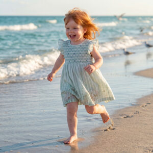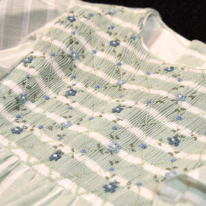 季節感あふれる一着に仕上げてくれました。胸元には繊細なスモッキング刺繍と