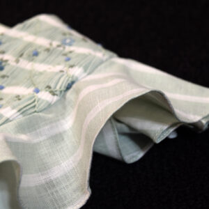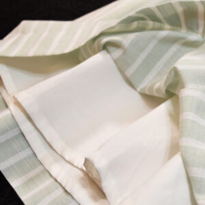 やさしいグリーンに白抜きのストライプが涼しげで上品な印象で