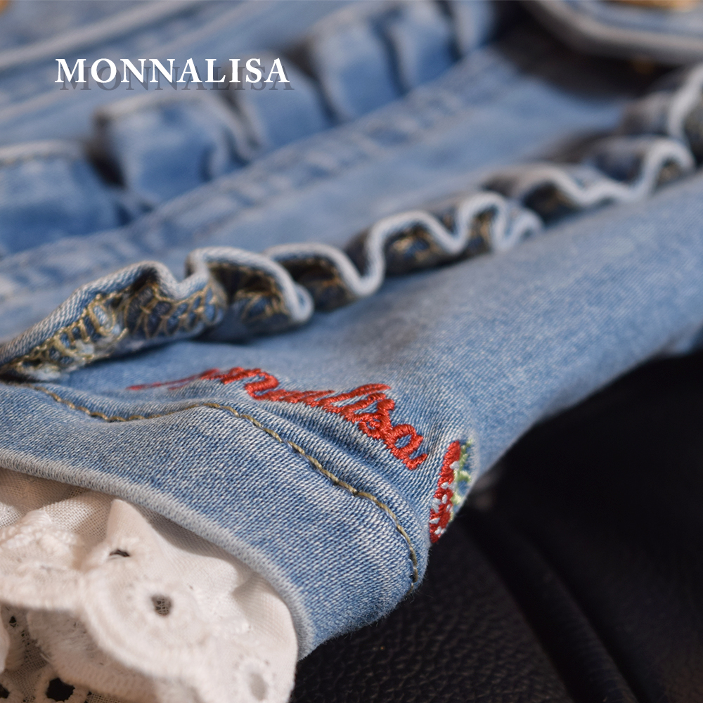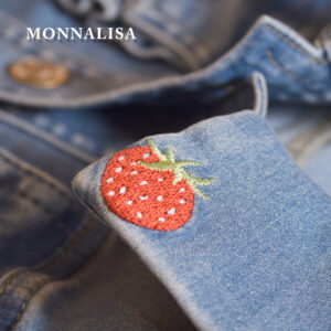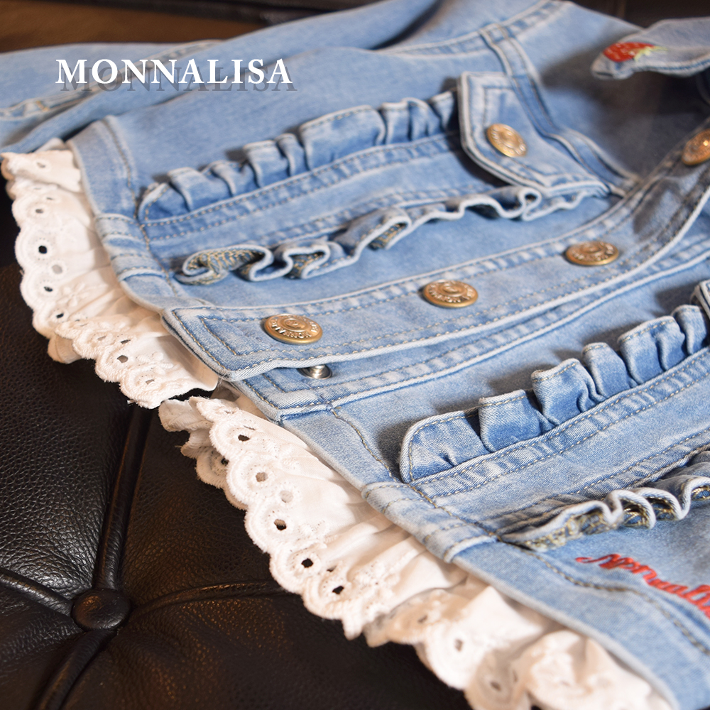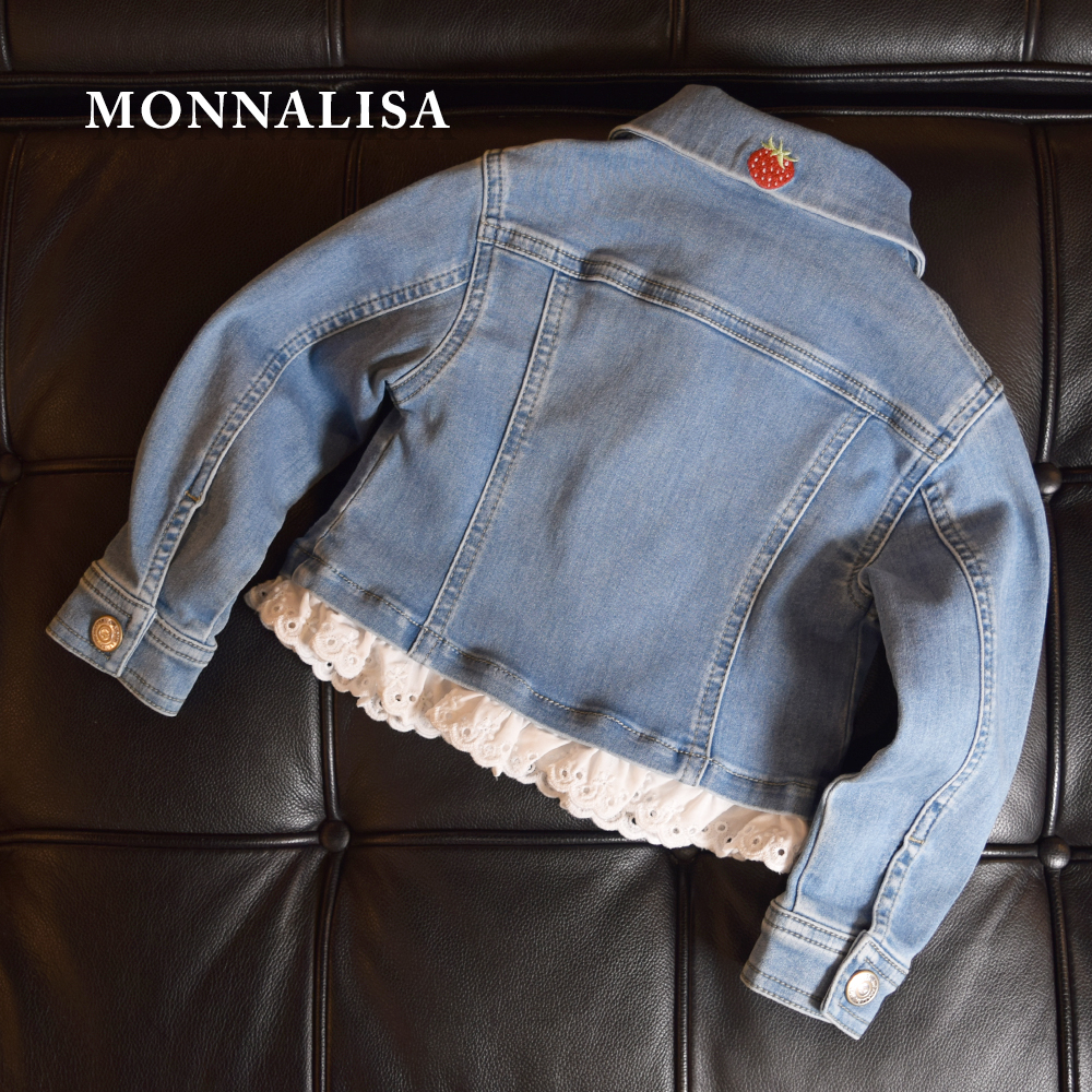 【NEW】 【MONNALISA モナリザ】キッズ デニムジャケット フリル付き|女の子用いちご刺繍Gジャン