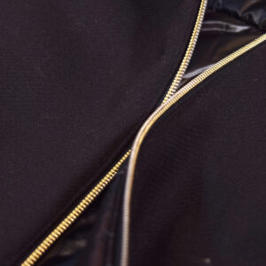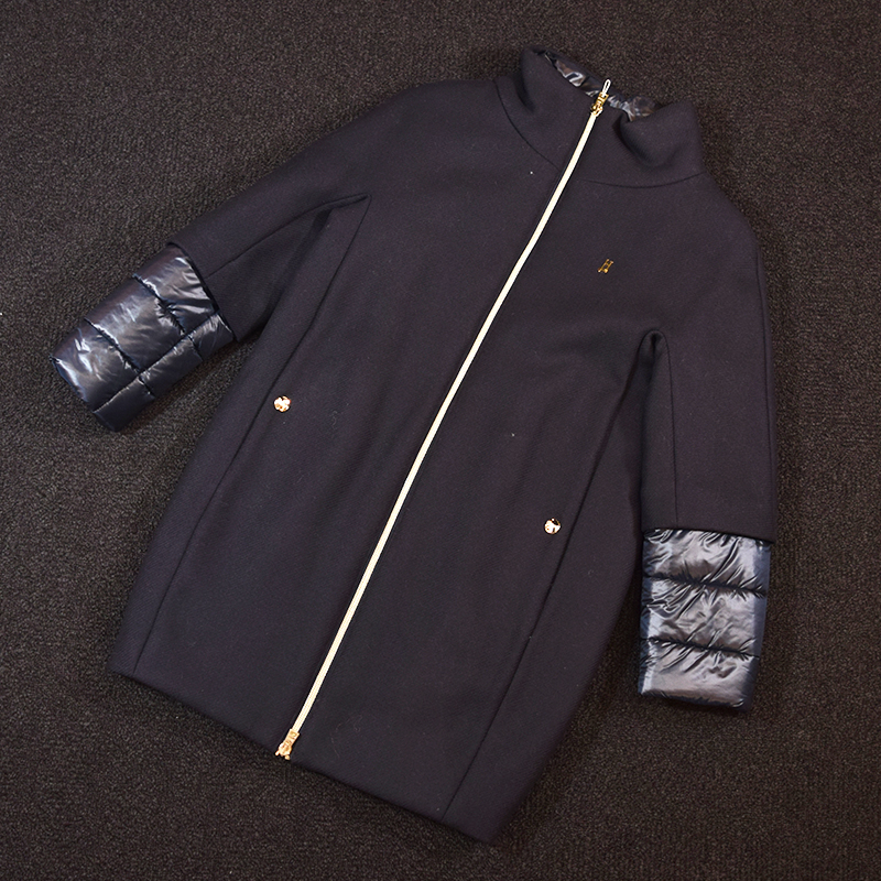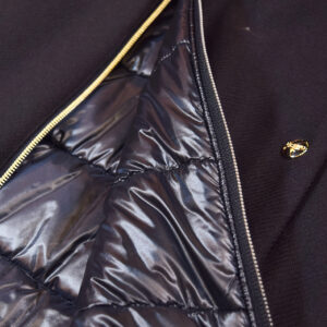 スッキリとしたノーカラーがは首周りをキレイに見せてくれ、また合わせるお洋服のデザインを壊す事なく 綺麗なシルエットに見せてくれます。反面シンプル過ぎてしまう…という事もあったりするのですが(汗) こと、こちらのモデルに関しては袖部分のナイロン素材が “ベタっ”としがちな全体の印象にアクセントになりますので 同色のハイライトが付きメリハリ感もあって◎です。